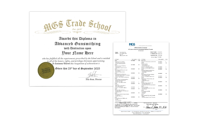 MGS’s Advanced Gunsmithing program is designed for those interested in a career in the firearms industry or in opening their own gunsmith business. It is comprised of 65 lessons, and 7 hands-on projects, offering a comprehensive education on the firearm’s industry. It covers everything from the basics of gun repair to the business of professional gunsmithing.